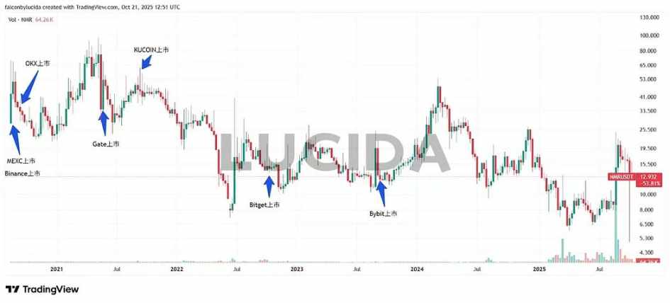 NMR 则先后在 MEXC、Binance、OKX、Gate、KUCOIN、Bitget、Bybit 上市。