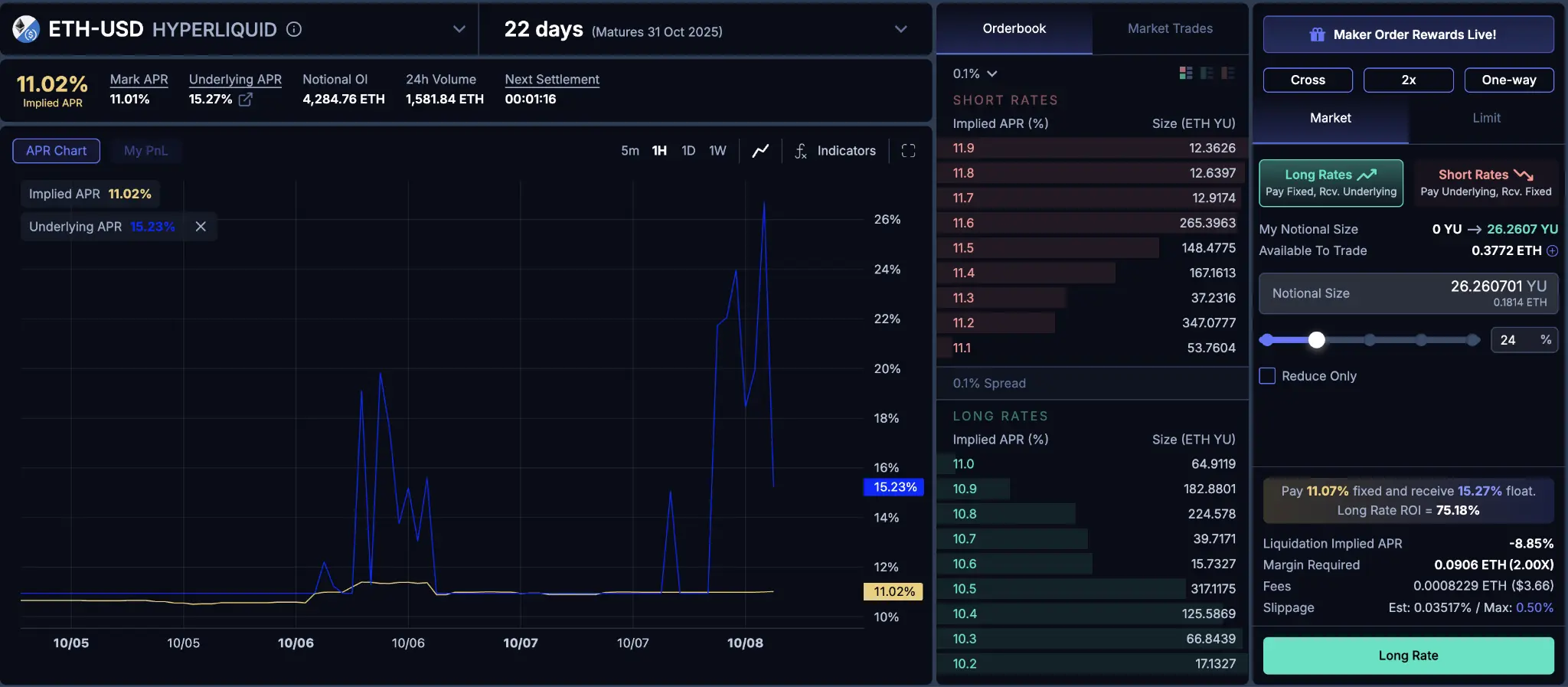 1 – 时间(到期日很重要): Boros 上的每个隐含资金费率市场都有一个到期日。这是头寸对短期费率变化敏感程度的关键因素。