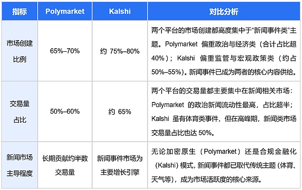 Polymarket 与 Kalshi:新闻类别预测事件比例