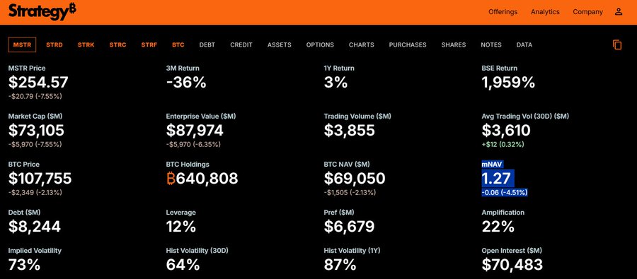 当前 mNAV 1.27x(低于 2.5x),所以 MSTR 可能仅用于债务 / 股息支付,而非大举买 BTC。这解释了第三季度买入放缓(仅 22 亿美元)的原因。