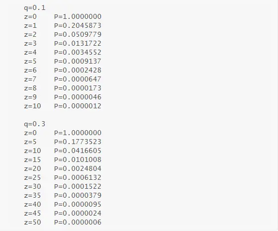 获取部分结果,我们可以看到概率随着Z的增加指数级下降: