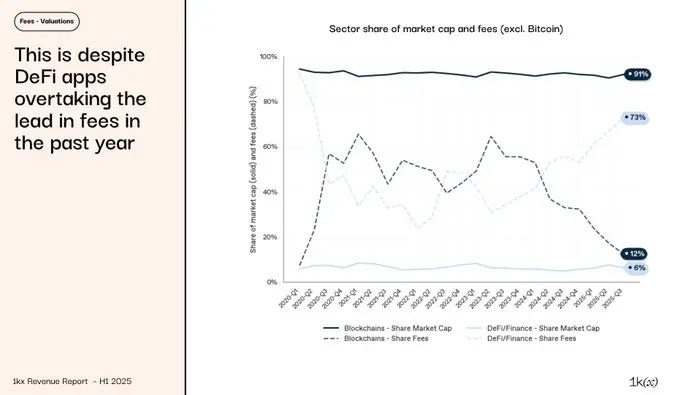 费用与估值出现背离:应用类项目虽主导费用生成,但市值份额几乎未变,原因何在?