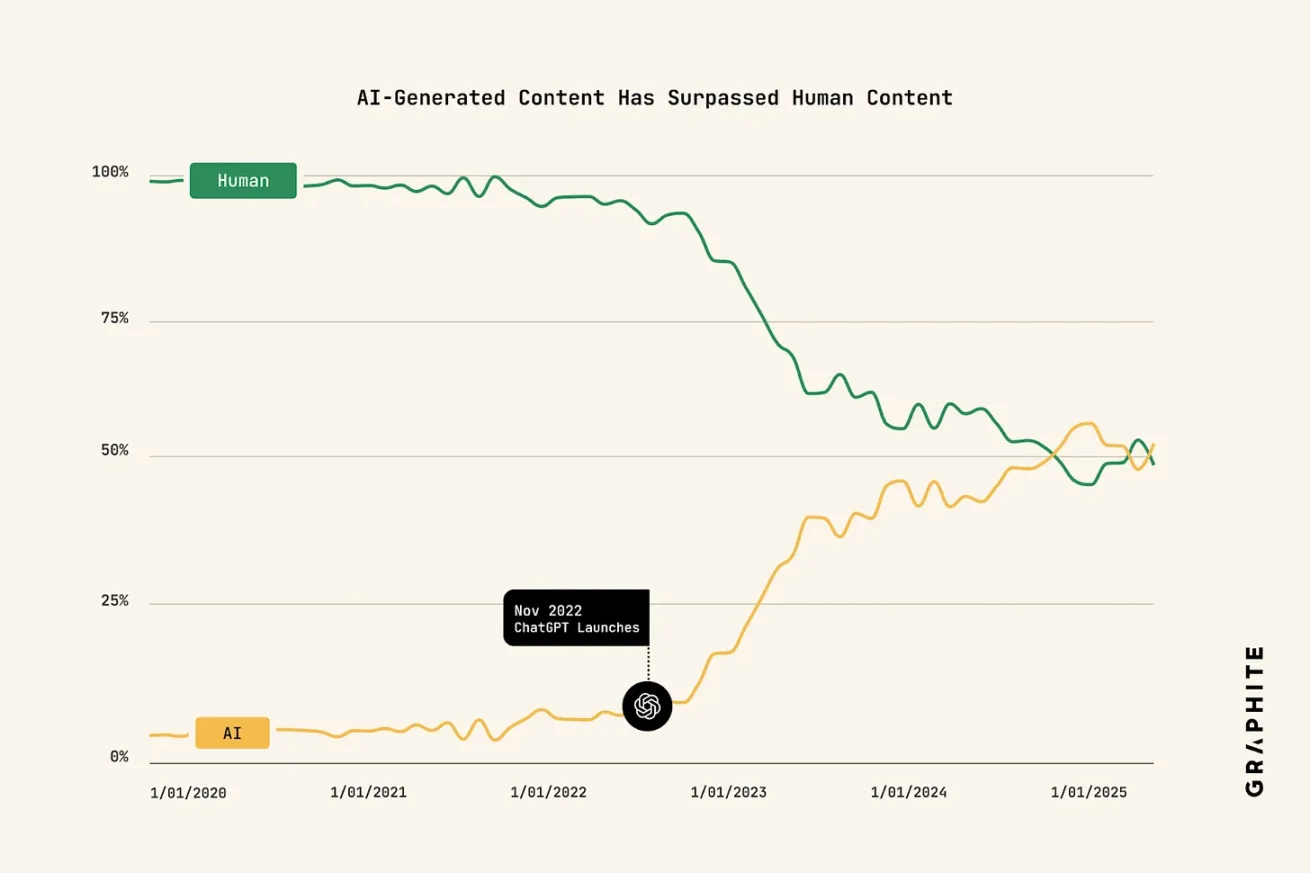 内容变质:AI 生成内容数量已超过人类创作;