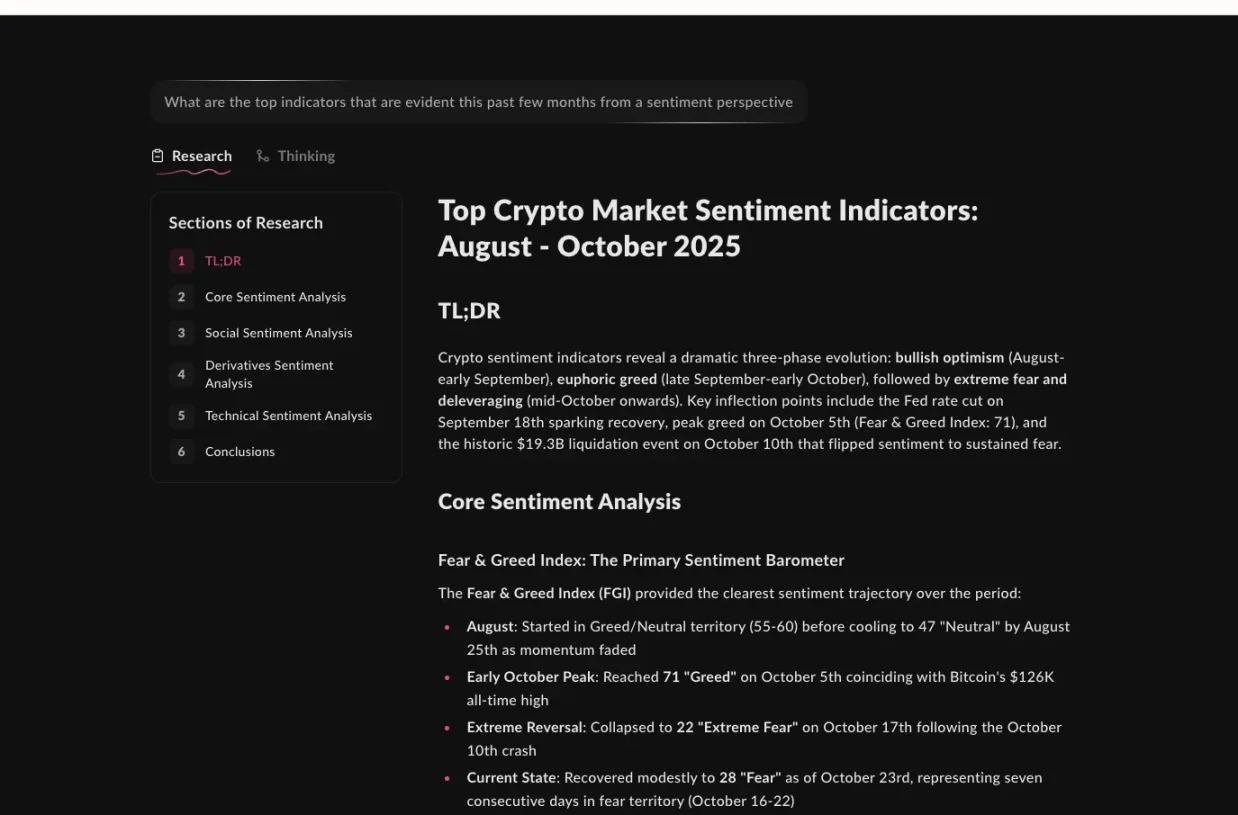 AskSurf:聚焦加密领域定性研究,回答诸如 DeFi 池 APY、空投时间、高收入项目等利基问题。它收集高度情境化信息,成为个人理解行业的「情境层」。未来,大型交易所可整合它,让用户在购买代币前轻松完成尽职调查。