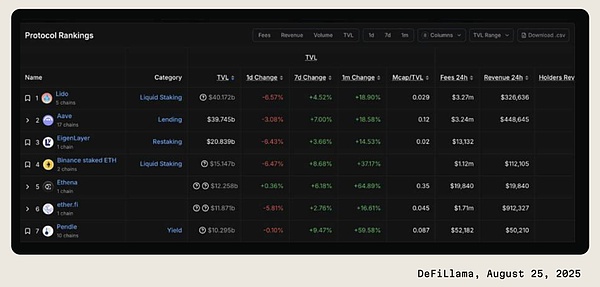 为避免混淆,我们剔除 Binance 质押 ETH 等交易所背书的资产,专注纯链上 DeFi 场景。所选快照日期为 2025 年 8 月 25 日,可代表近期用户分布,并作为推算 DeFi 收益受众的基准。