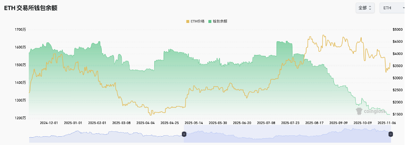 图:ETH交易所余额环比下降1.1%
