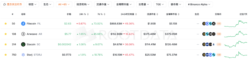 相关公司Western Digital (WDC)近期上涨6倍,STX上涨5倍,MU上涨4倍。同时美国存储概念火热蔓延到加密市场,FIL一周上涨73%,AR一周上涨46%;FIL上周付费存储交易量首次达到51%,超过矿工自刷数据。