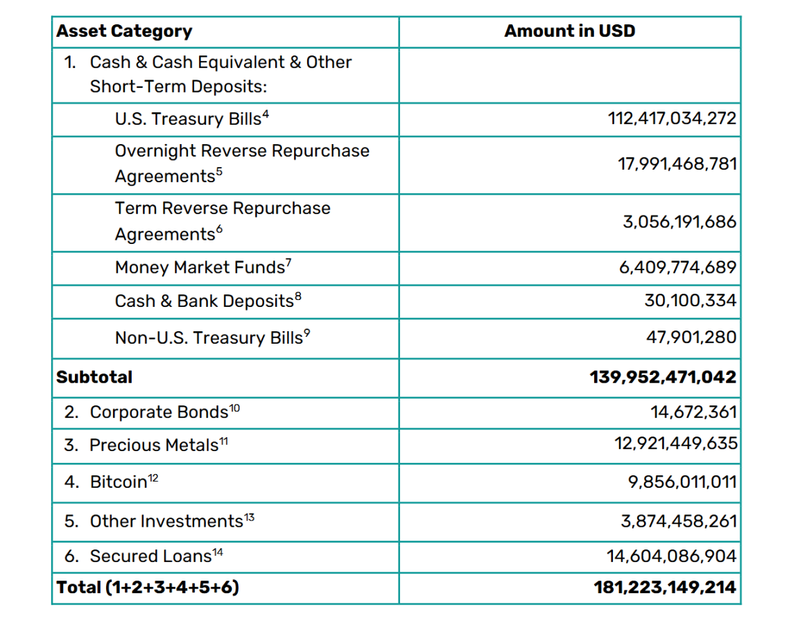 这正是 Tether 的「七寸」。根据 Tether 的 Q3 报告,其总储备高达 1812 亿美元,而已发行的 USDT 为 1744 亿美元 。这其中,129 亿美元的黄金和 99 亿美元的比特币,以及其他投资和贷款,在《GENIUS 法案》的定义下全部是「非合规资产」。