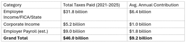 这些收入还在持续产生涟漪效应:员工将钱用于购买日用品、住房和度假等消费,根据经济学乘数效应,每 1 美元可产生 1.5 至 2 美元的经济价值。