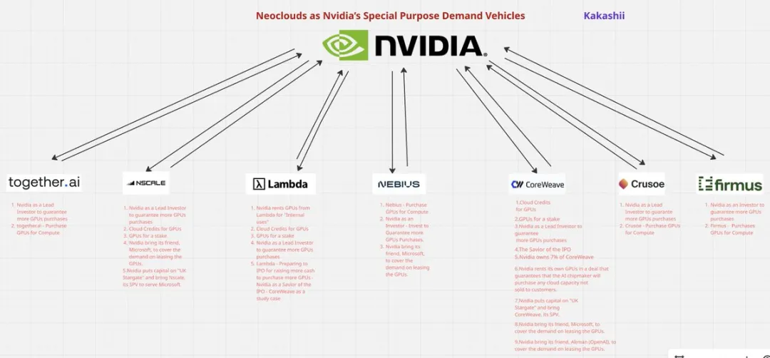 客户类型:理论上多元,实际早期高度依赖大厂(例如 Microsoft 对 CoreWeave 的早期支持)。由于规模较小,不像SPV背靠单一富爸爸,Neocloud 对上游供应商(Nvidia)的依存度更高。