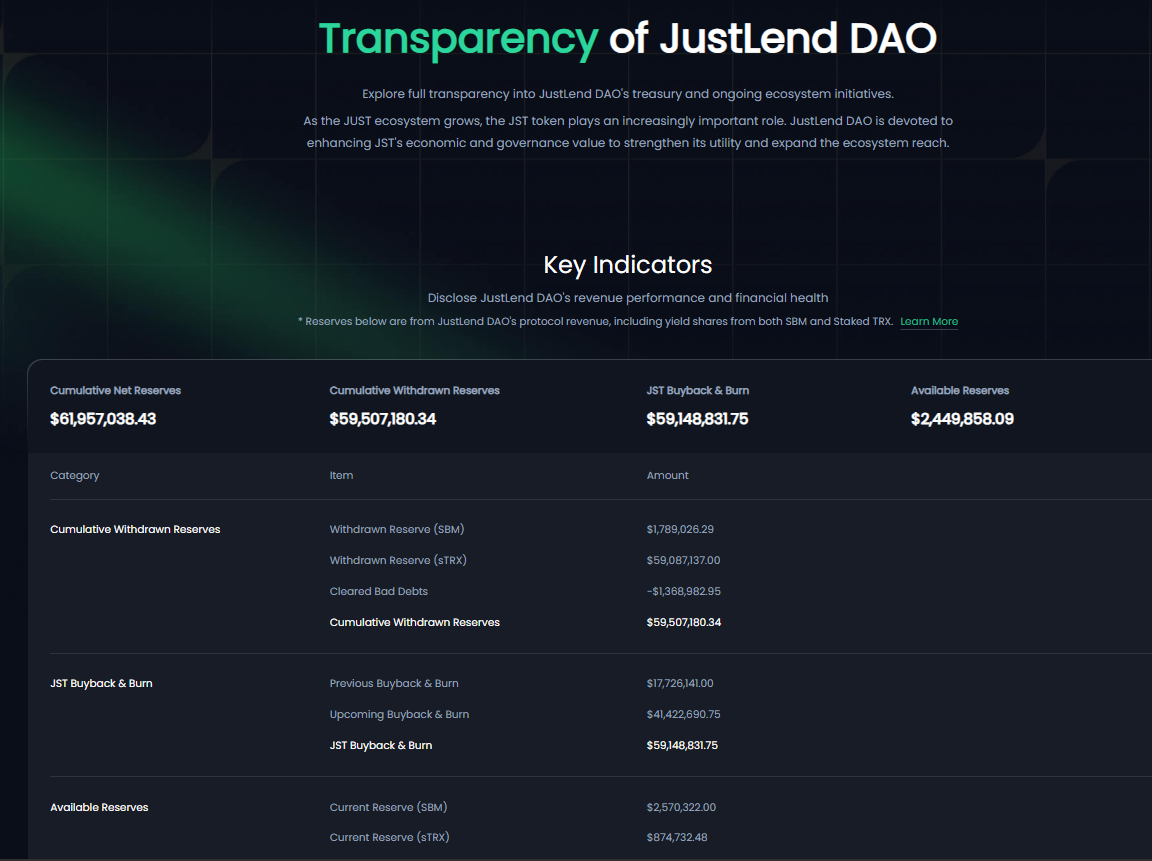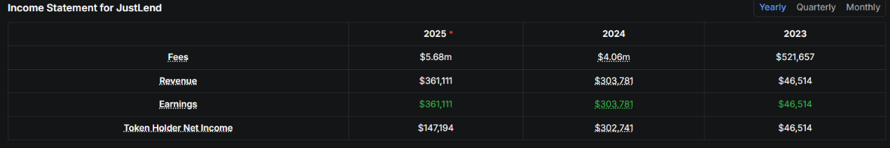 据披露的财务数据,JustLend DAO平台累计净收益已逼近 6200 万美元,其中累计已提取的收益 为5950 万美元,剩余收益约 244 万美元,整体财务状况稳健可控。