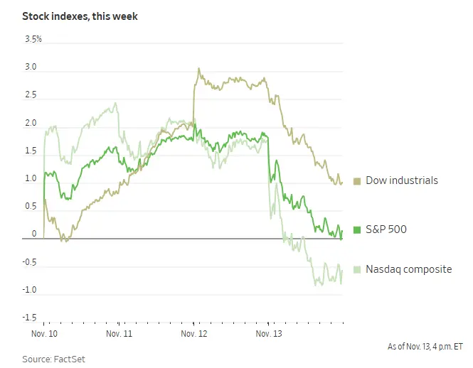 美国政府关门事件结束,经济数据推迟发布,投资者重估美联储12月降息前景,周四美股创一个月最大单日跌幅。