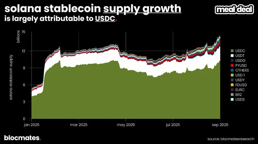 不过值得注意的是,得益于对稳定币的关注激增,Solana 的稳定币供应自年初至三季度末几乎增长了三倍。事实证明,“快且便宜”是吸引用户使用稳定币的一大卖点,尤其在 Solana 的 DeFi 生态已相当成熟的背景下。