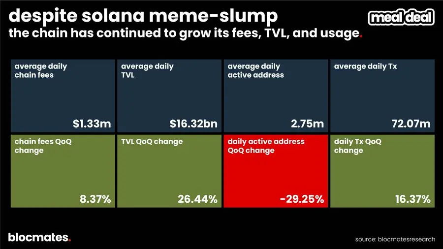 尽管 Meme 季结束后市场略显低迷,但短期价格波动的意义正在下降。Solana 已建立稳固地位,并确定会长期存在。