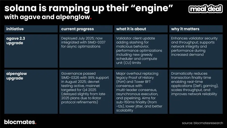 虽然该平台的大多数用户都忙于追逐最新的 meme 表情包,但@solana 核心团队一直在推进一套极具雄心的系统级升级路线。这并不是对单一指标的修修补补,而是一套全面提升网络性能、安全性、去中心化程度与用户体验的系统工程。这些升级可大致分为三大类。