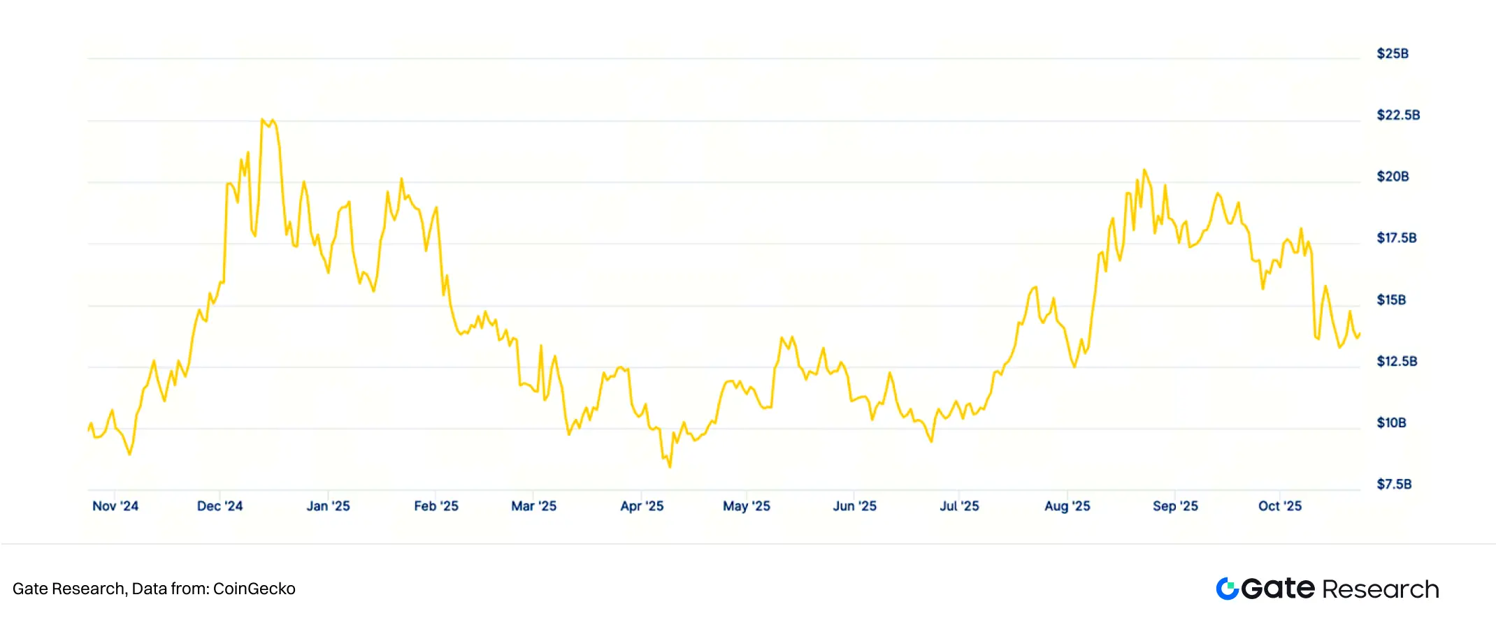 截至 2025 年 10 月,根据 DefiLlama Total Value Secured (TVS) 与 CoinGecko 市值数据,预言机协议的整体锁仓规模约为 1,021.79 亿美元,整体市值约 141 亿美元,较 2024 年同期(约 98 亿美元)增长超过 43%。在区块链基础设施赛道中,预言机板块市值占比已接近 20%,成为增速最快的细分领域之一。