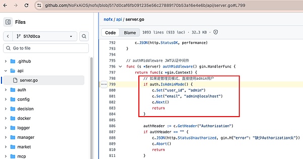 经过慢雾安全团队的深入分析,发现 NOFX AI 在不同 commit 版本中存在两类主要鉴权问题。