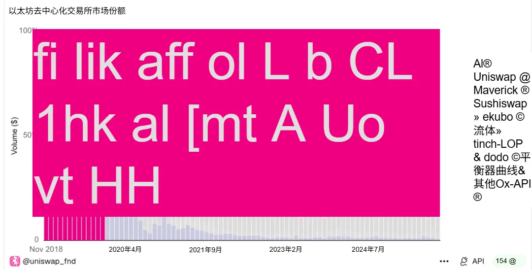 在跨链 Swap 市场中,UniswapX 的实际效果,远逊于竞品 PancakeSwap 在体验上的优化,从 24 年开始,市占率就不断被蚕食。如今也不过是 2、3 成的占有率。