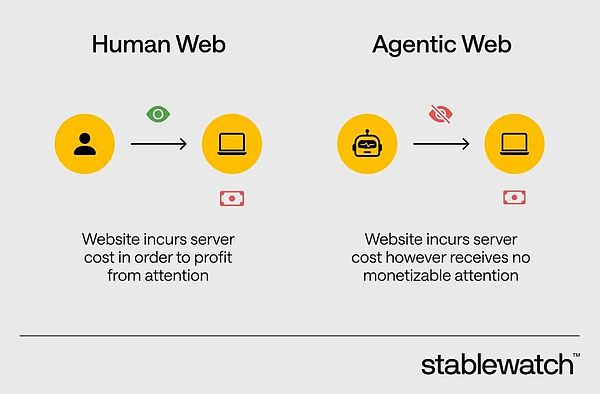 生成式 AI 的快速普及正在给数字经济带来一种系统性低效。这并非因为某个“错误”,而是源于一个更深层的结构性矛盾:AI 自主体获取信息的方式,与互联网长期以来依赖的内容变现模式,在架构上并不兼容。