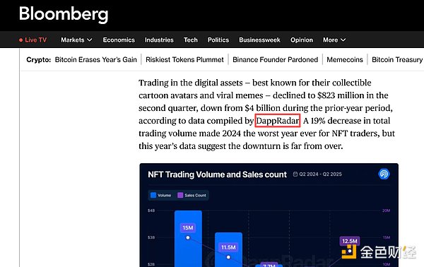 很多 Web3 行业新人或许不清楚,DappRadar 曾经是一个非常重要且权威的数据来源。除了诸如 CoinDesk 和中文 Web3 媒体的引用,包括彭博社、《福布斯》、BBC 等传统欧美主流媒体也曾多次引用 DappRadar 数据。