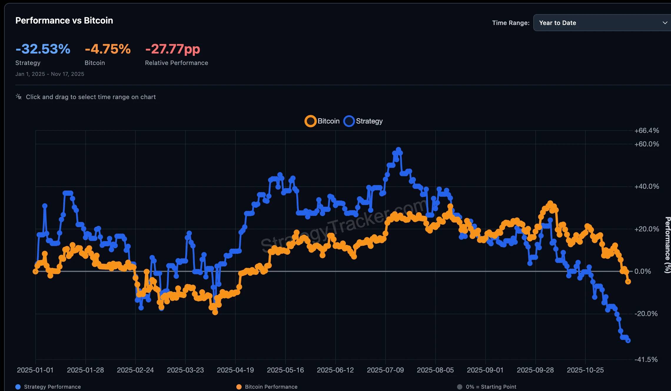 从今年年初算的话,BTC只跌了4.75%,但MSTR股价已经跌了32.53%。