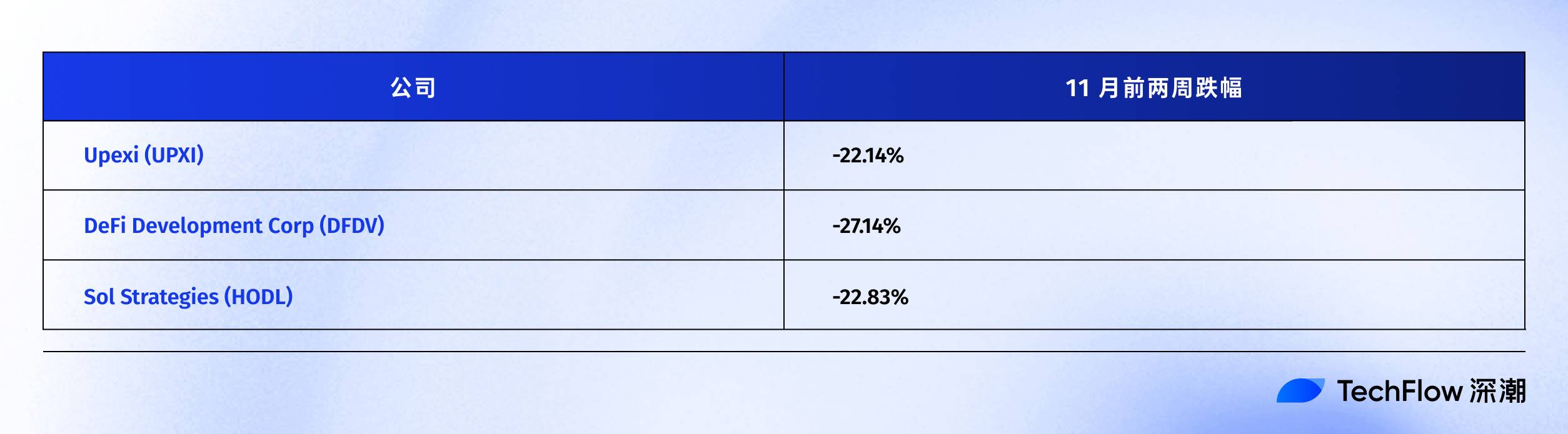 这些公司都是比特币矿工+财库模式,11月前两周,BTC跌了约15%,但它们的股价跌幅都超过30%。