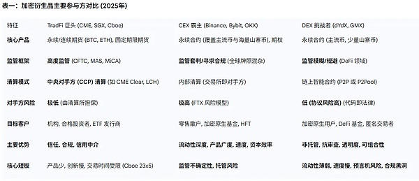 这场战争不会有单一的胜利者,而是导致了市场的永久性分化 (Bifurcation) 。TradFi 巨头 (CME, SGX) 凭借其无与伦比的“信任”武器 — — 中央对手方清算 (CCP) ,将牢牢锁定“合规机构”这块最肥沃的领地,特别是与 ETF 绑定的对冲流量 。