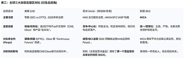 亚洲 (MAS/HKMA): 新加坡和香港的策略是“筑巢引凤”。它们正在打造全球最清晰、最亲机构的定制化加密监管框架 。它们的目标是成为美国之外的全球机构加密中心。SGX 推出永续合约 ,是新加坡国家战略的金融武器。