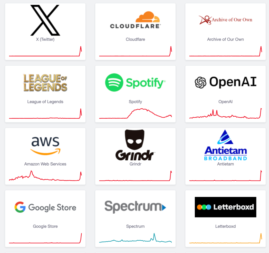 宕机期间,X 的部分功能中断,多家网站也陷入访问受阻。根据故障跟踪平台 Downdetector 的数据,除 X 之外,也有大量站点受到影响,相关报告数量持续攀升。用户在访问 X、ChatGPT、DoorDash、IKEA,以及纽约市大都会运输署(MTA)等网站时,都看到与 Cloudflare 相关的错误信息。