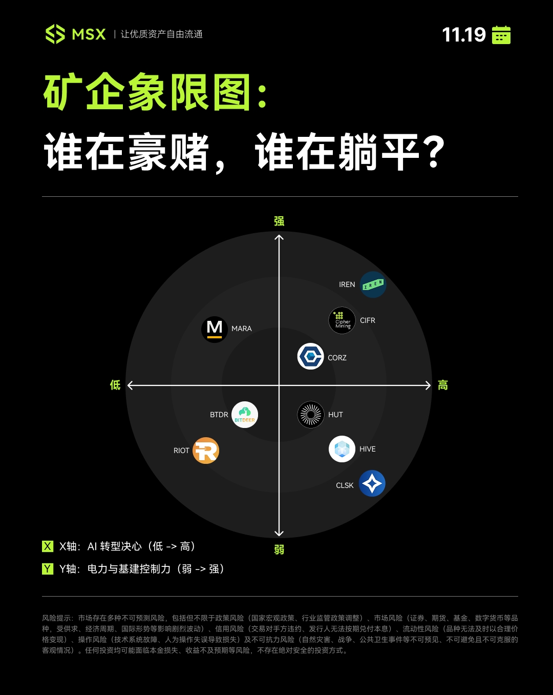 同时,CIFR、BTDR 等矿企也在逐步扩大电力与算力资源,向 AI 产业延伸其业务边界,然而,并非所有公司都在这一竞赛中以同样的速度推进。
