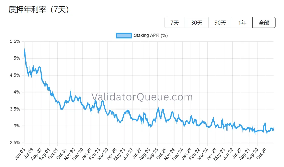 二是质押收益率下降和借贷成本上升,使得杠杆质押无利可图。当前以太坊的年化质押收益率约为 2.9% APR,远低于 2023 年 5 月创下的 8.6% 的历史最高纪录。
