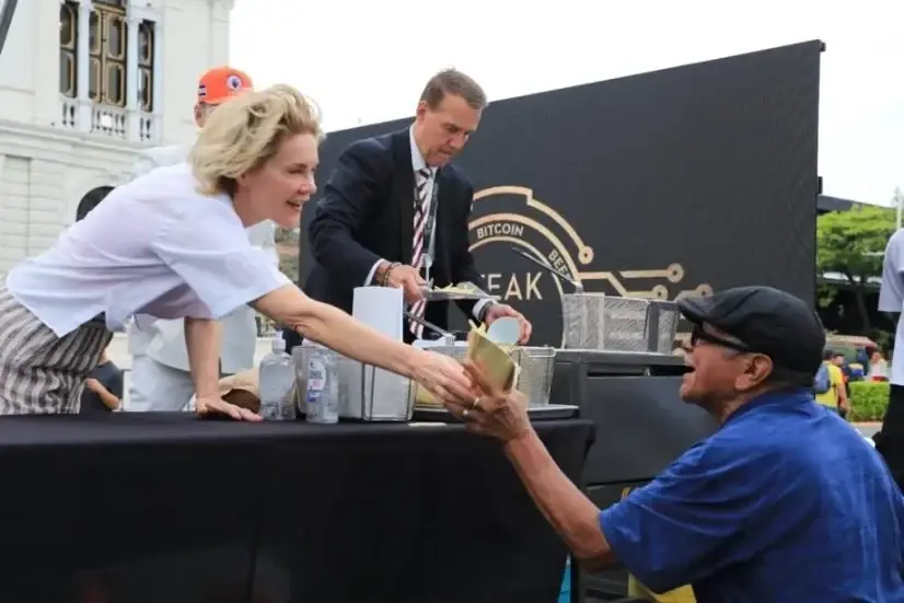在外面的赫拉尔多·巴里奥斯广场,会议延伸到了公共空间;会议内容配有西班牙语翻译,向当地民众家庭、学生、长者直播。店铺和摊位都接受「聪」支付,比特币仿佛回归其自然栖息地,融入了城市的日常,公众也成为了会议的一部分。